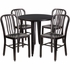 COMMERCIAL GRADE 30" ROUND BLACK-ANTIQUE GOLD METAL INDOOR-OUTDOOR TABLE SET WITH 4 VERTICAL SLAT BACK CHAIRS
