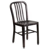 COMMERCIAL GRADE 30" ROUND BLACK-ANTIQUE GOLD METAL INDOOR-OUTDOOR TABLE SET WITH 4 VERTICAL SLAT BACK CHAIRS: FREE SHIPPING!