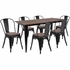 30.25" X 60" BLACK METAL TABLE SET WITH WOOD TOP AND 6 STACK CHAIRS: FREE SHIPPING!