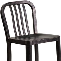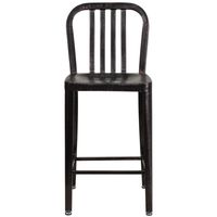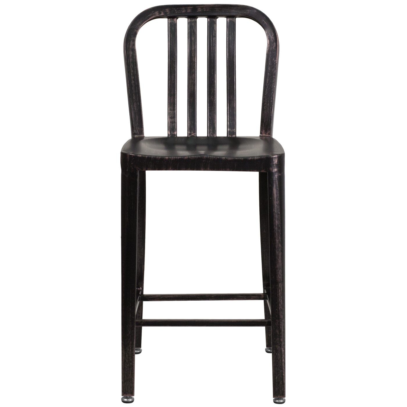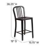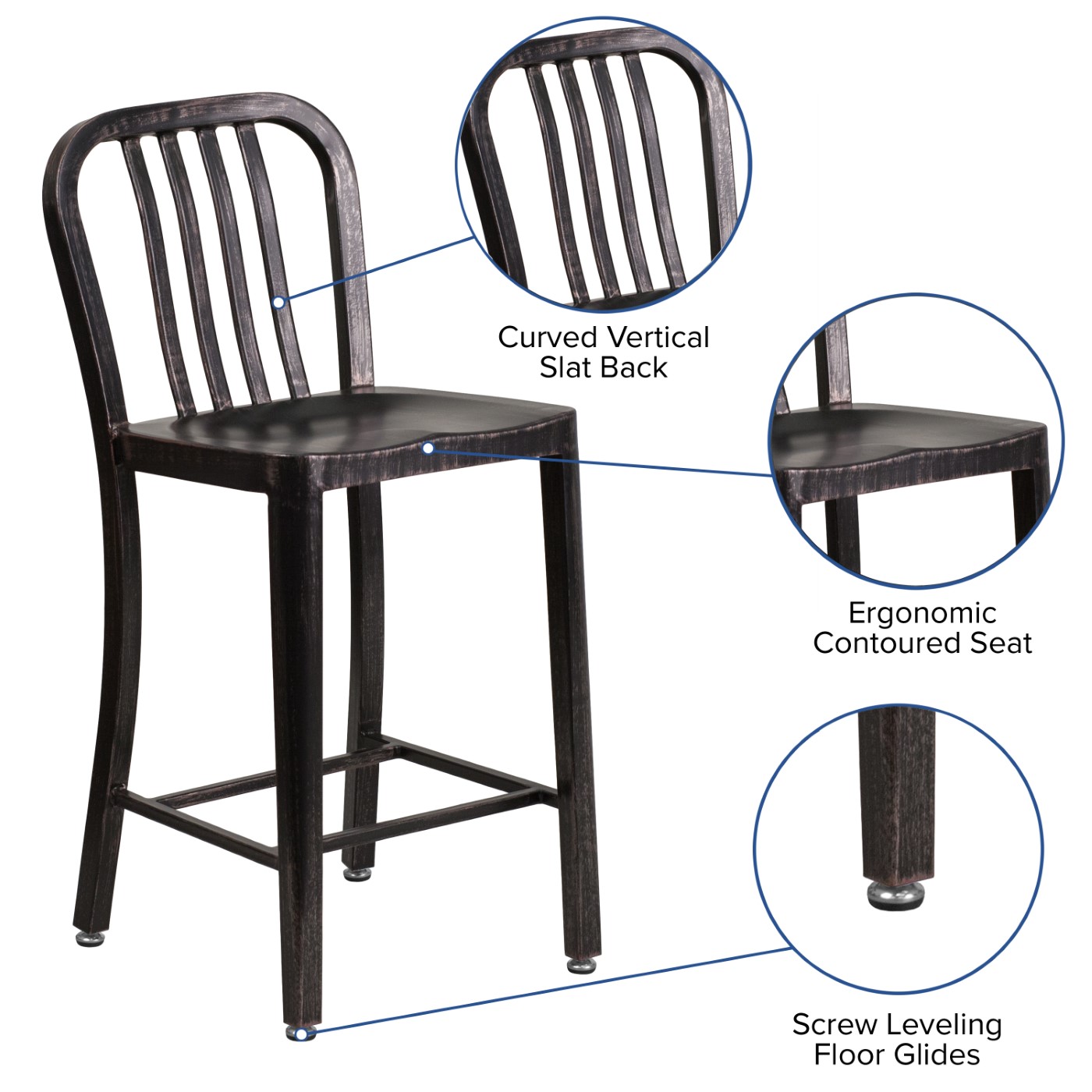 COMMERCIAL GRADE 24" HIGH BLACK-ANTIQUE GOLD METAL INDOOR-OUTDOOR COUNTER HEIGHT STOOL WITH VERTICAL SLAT BACK