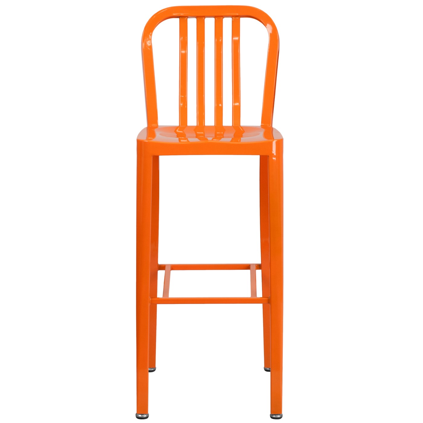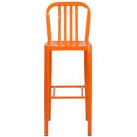 COMMERCIAL GRADE 30" HIGH ORANGE METAL INDOOR-OUTDOOR BARSTOOL WITH VERTICAL SLAT BACK: FREE SHIPPING!