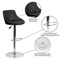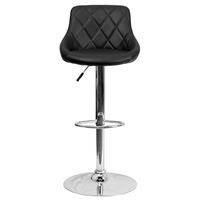 CONTEMPORARY BLACK VINYL BUCKET SEAT ADJUSTABLE HEIGHT BARSTOOL WITH DIAMOND PATTERN BACK AND CHROME BASE: FREE SHIPPING!