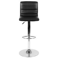 MODERN BLACK VINYL ADJUSTABLE BAR STOOL WITH BACK, COUNTER HEIGHT SWIVEL STOOL WITH CHROME PEDESTAL BASE