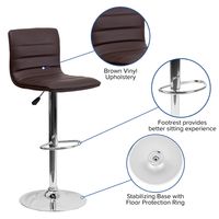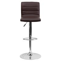 MODERN BROWN VINYL ADJUSTABLE BAR STOOL WITH BACK, COUNTER HEIGHT SWIVEL STOOL WITH CHROME PEDESTAL BASE: FREE SHIPPING!