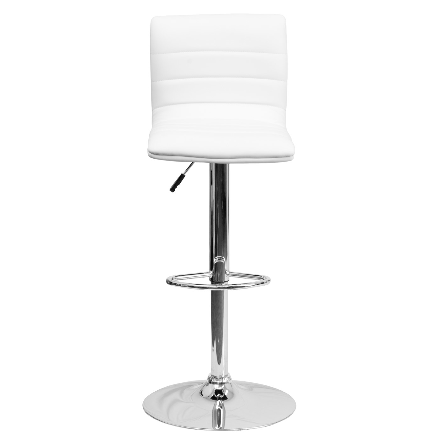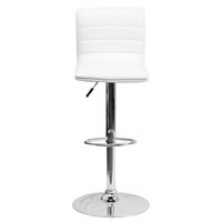 MODERN WHITE VINYL ADJUSTABLE BAR STOOL WITH BACK, COUNTER HEIGHT SWIVEL STOOL WITH CHROME PEDESTAL BASE: FREE SHIPPING!
