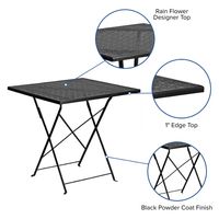 COMMERCIAL GRADE 28" SQUARE BLACK INDOOR-OUTDOOR STEEL FOLDING PATIO TABLE
