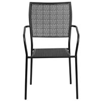 COMMERCIAL GRADE BLACK INDOOR-OUTDOOR STEEL PATIO ARM CHAIR WITH SQUARE BACK