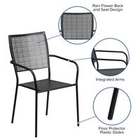 COMMERCIAL GRADE BLACK INDOOR-OUTDOOR STEEL PATIO ARM CHAIR WITH SQUARE BACK: FREE SHIPPING!