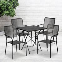 COMMERCIAL GRADE 28" SQUARE BLACK INDOOR-OUTDOOR STEEL FOLDING PATIO TABLE SET WITH 4 SQUARE BACK CHAIRS