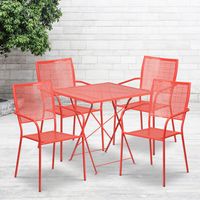 COMMERCIAL GRADE 28" SQUARE CORAL INDOOR-OUTDOOR STEEL FOLDING PATIO TABLE SET WITH 4 SQUARE BACK CHAIRS