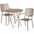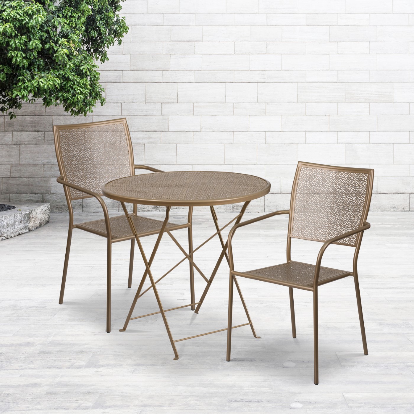 COMMERCIAL GRADE 30" ROUND GOLD INDOOR-OUTDOOR STEEL FOLDING PATIO TABLE SET WITH 2 SQUARE BACK CHAIRS