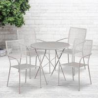 COMMERCIAL GRADE 30" ROUND LIGHT GRAY INDOOR-OUTDOOR STEEL FOLDING PATIO TABLE SET WITH 4 SQUARE BACK CHAIRS FREE SHIPPING!