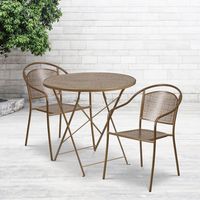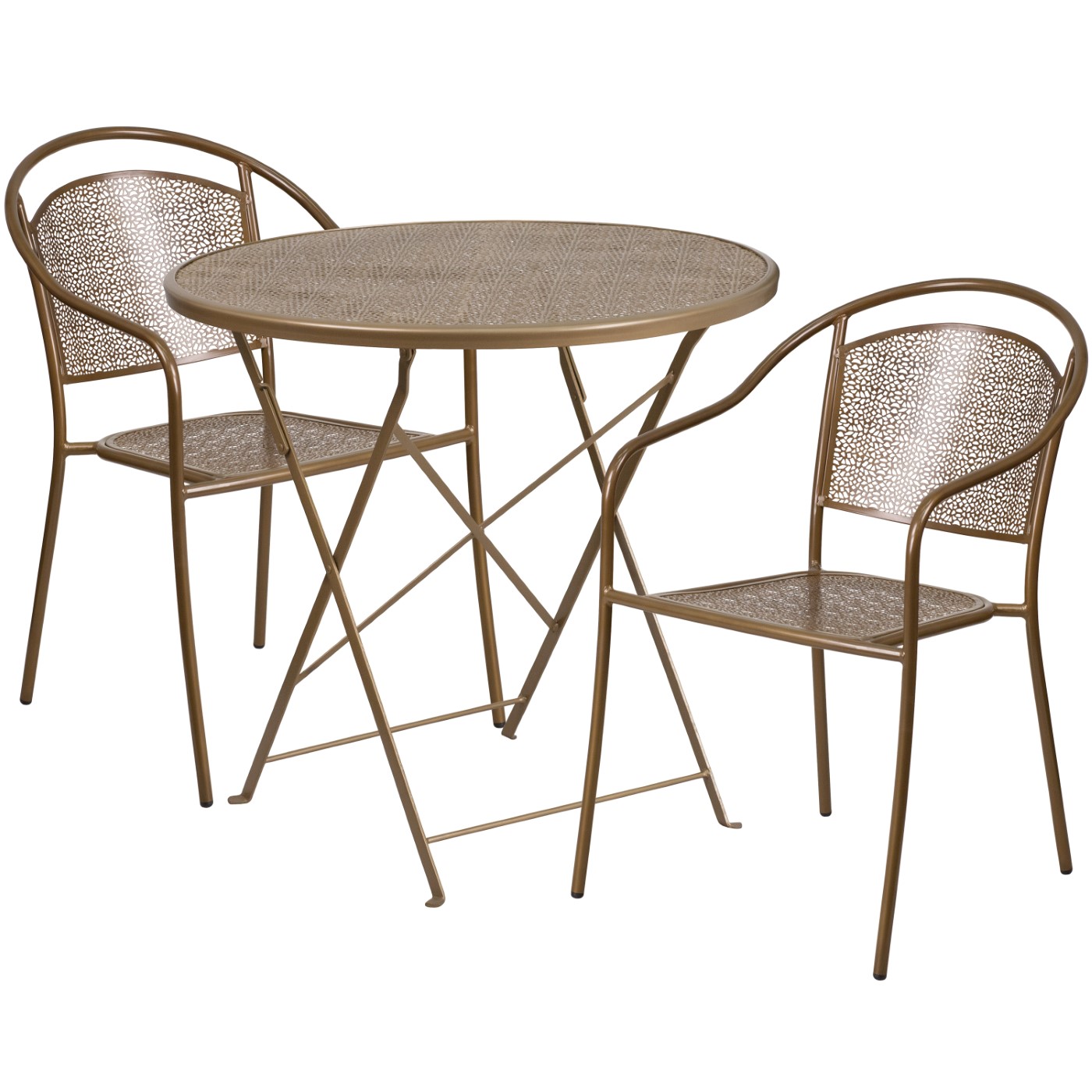 COMMERCIAL GRADE 30" ROUND GOLD INDOOR-OUTDOOR STEEL FOLDING PATIO TABLE SET WITH 2 ROUND BACK CHAIRS