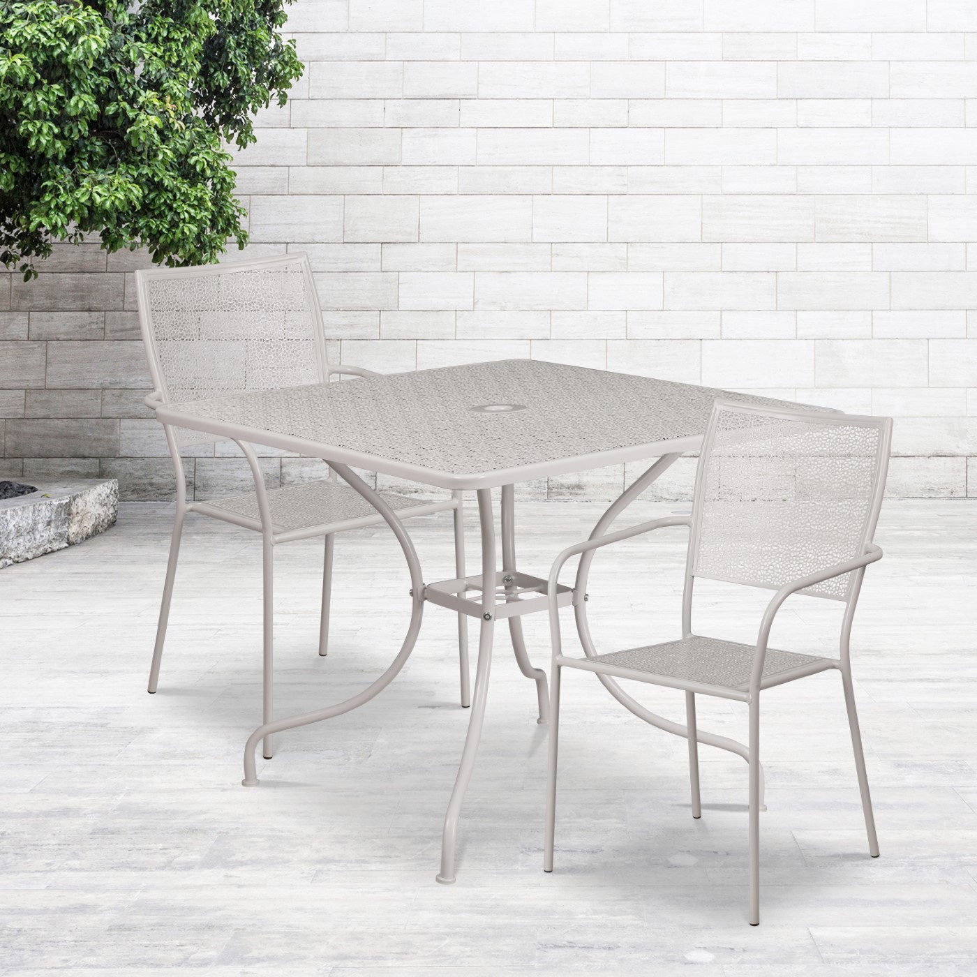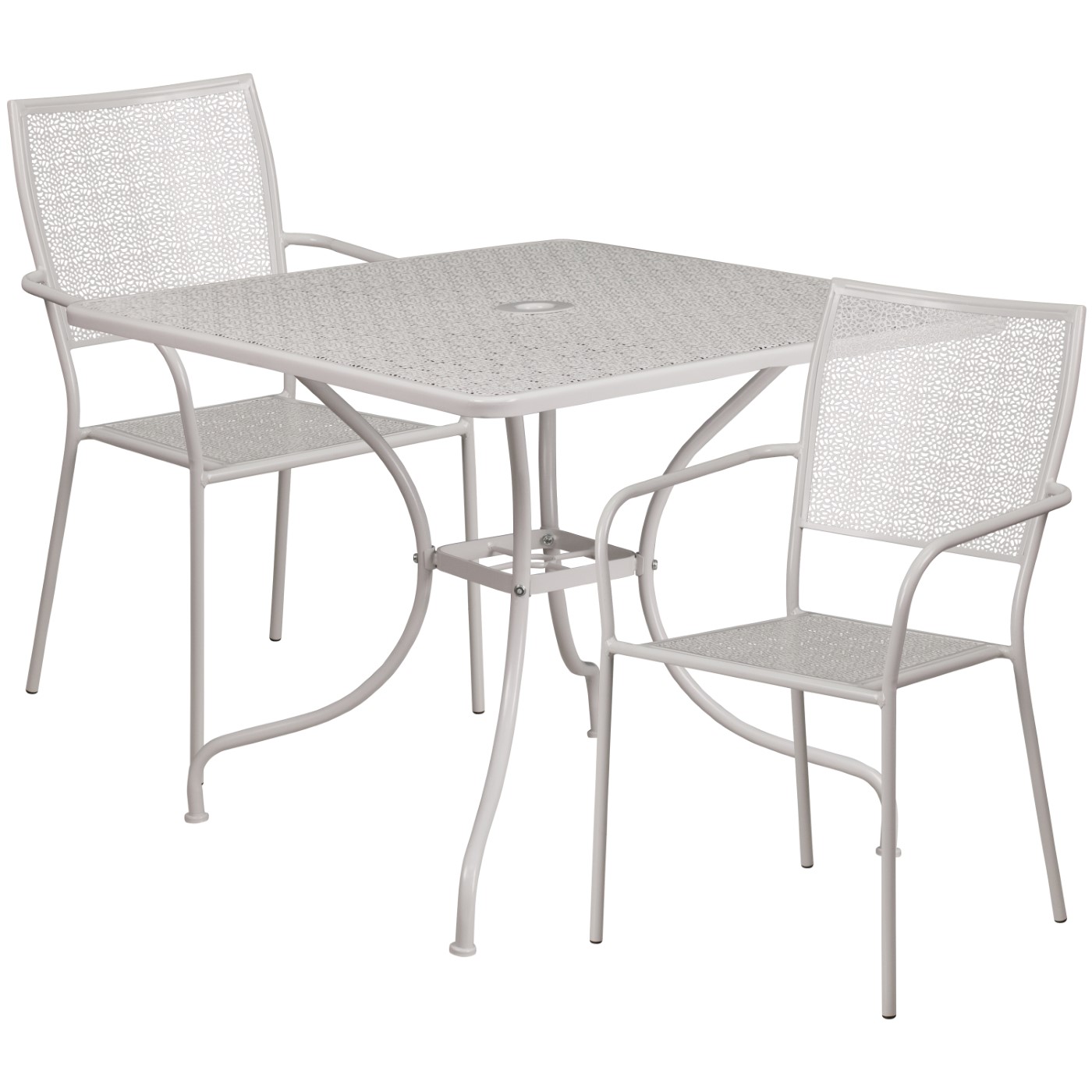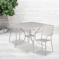 COMMERCIAL GRADE 35.5" SQUARE LIGHT GRAY INDOOR-OUTDOOR STEEL PATIO TABLE SET WITH 2 SQUARE BACK CHAIRS