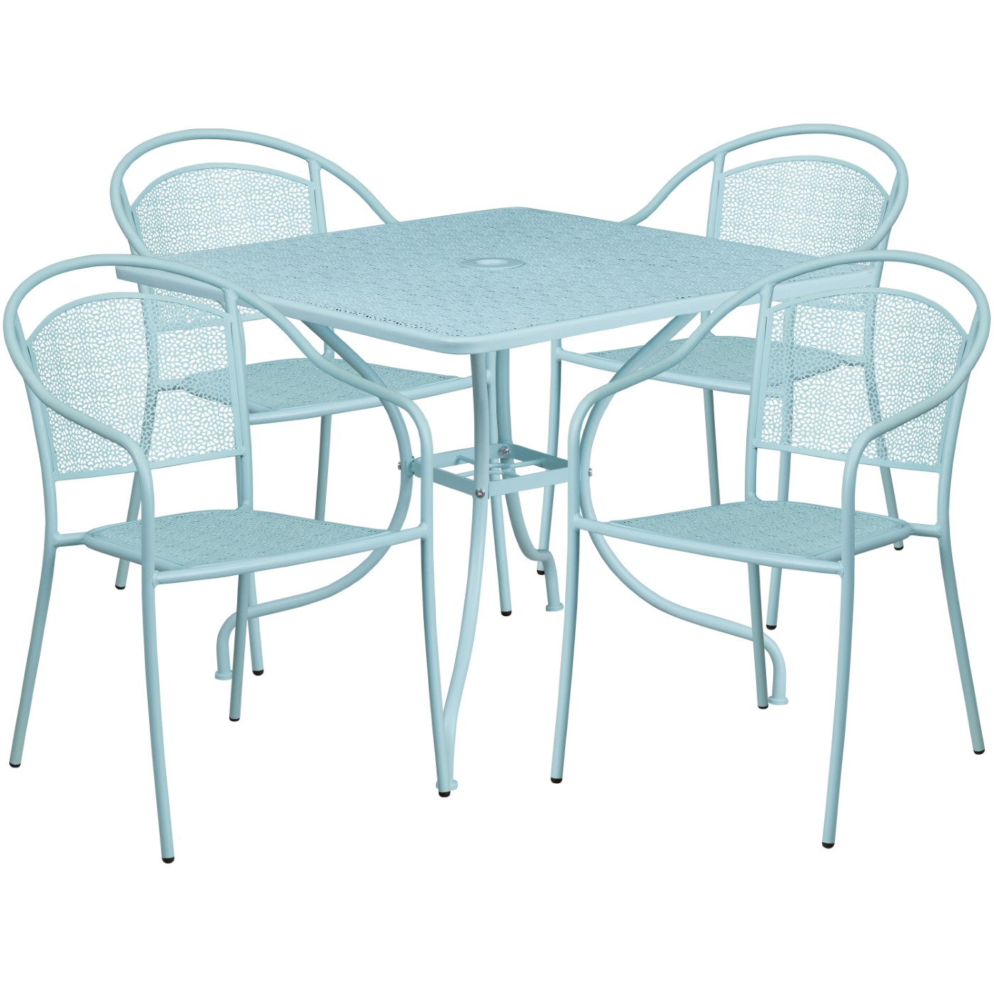 COMMERCIAL GRADE 35.5" SQUARE SKY BLUE INDOOR-OUTDOOR STEEL PATIO TABLE SET WITH 4 ROUND BACK CHAIRS FREE SHIPPING!