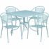 COMMERCIAL GRADE 35.5" SQUARE SKY BLUE INDOOR-OUTDOOR STEEL PATIO TABLE SET WITH 4 ROUND BACK CHAIRS