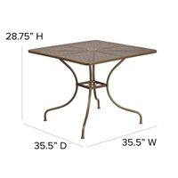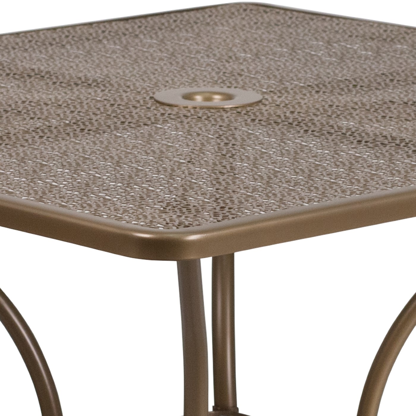 COMMERCIAL GRADE 35.5" SQUARE GOLD INDOOR-OUTDOOR STEEL PATIO TABLE WITH UMBRELLA HOLE