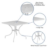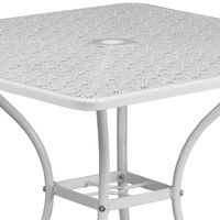 COMMERCIAL GRADE 35.5" SQUARE WHITE INDOOR-OUTDOOR STEEL PATIO TABLE WITH UMBRELLA HOLE