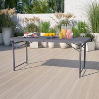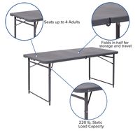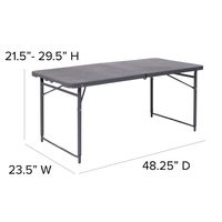 4-FOOT HEIGHT ADJUSTABLE BI-FOLD DARK GRAY PLASTIC FOLDING TABLE WITH CARRYING HANDLE