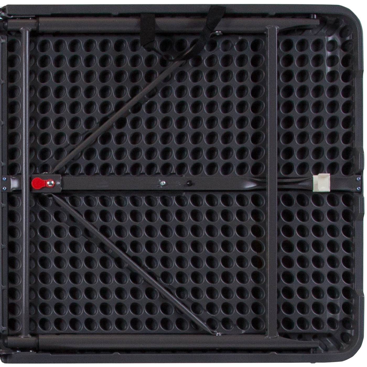 - Gray Powder Coated Locking Legs with protective floor caps, fold underneath top for flat storage
