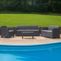 4 PIECE OUTDOOR FAUX RATTAN CHAIR, LOVESEAT, SOFA AND TABLE SET IN DARK GRAY: FREE SHIPPING!