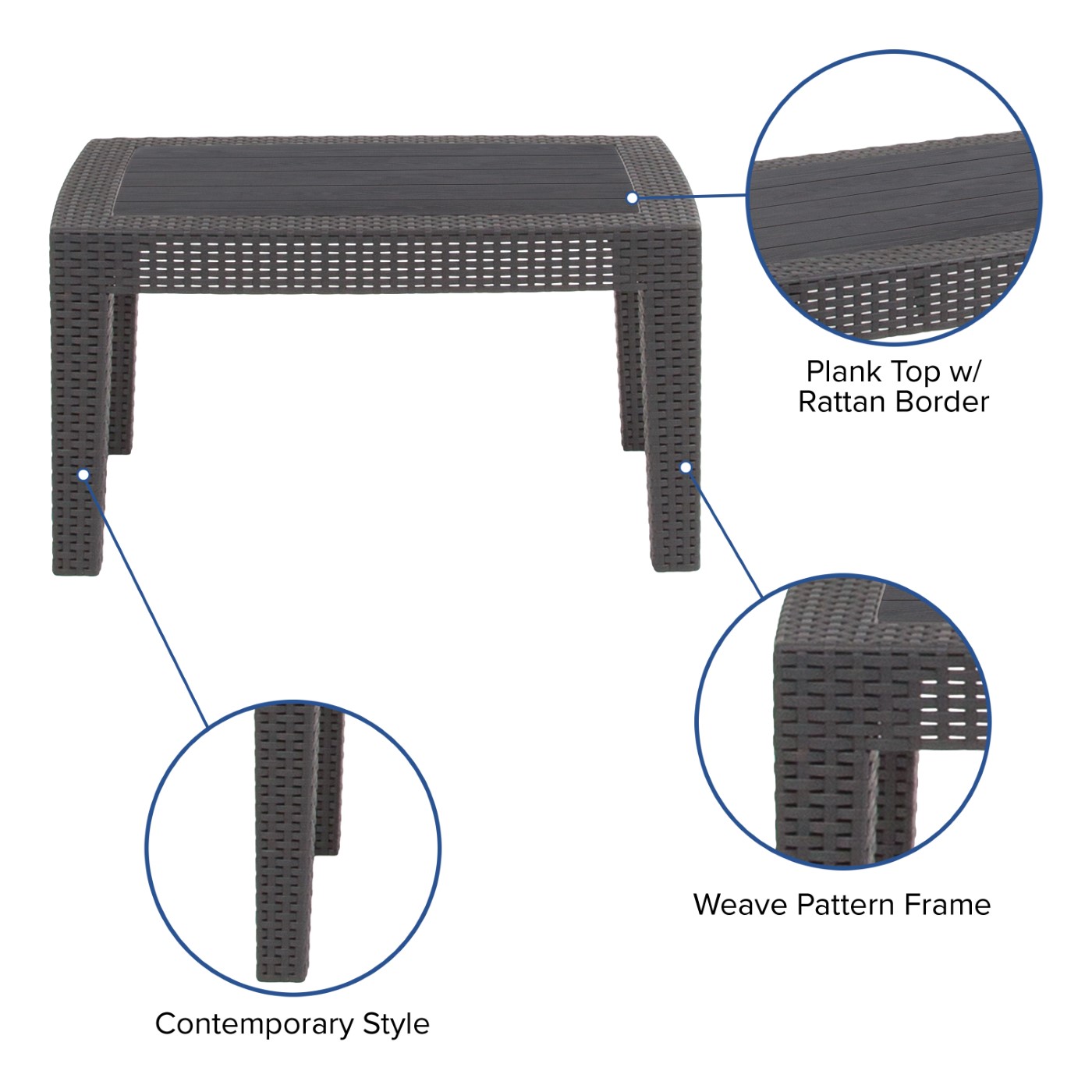 DARK GRAY FAUX RATTAN COFFEE TABLE: FREE SHIPPING!