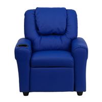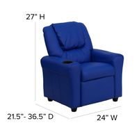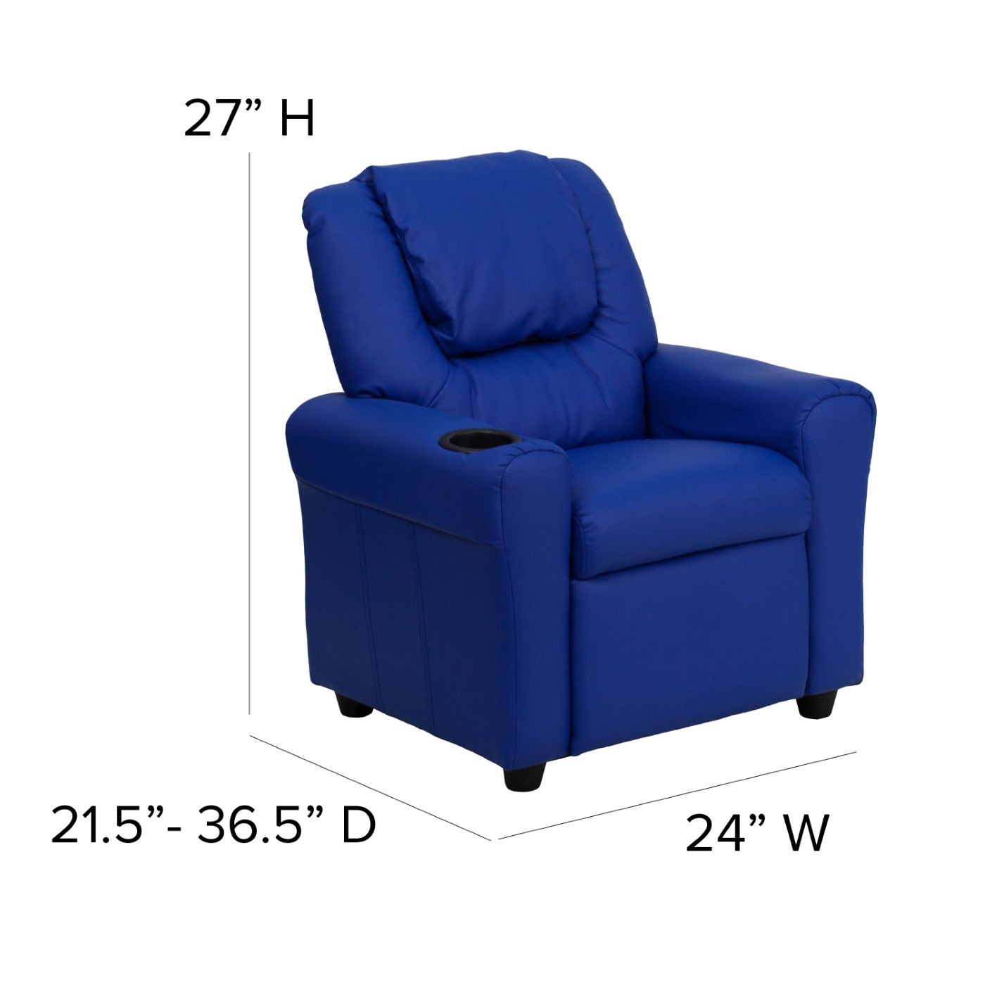 CONTEMPORARY BLUE VINYL KIDS RECLINER WITH CUP HOLDER AND HEADREST