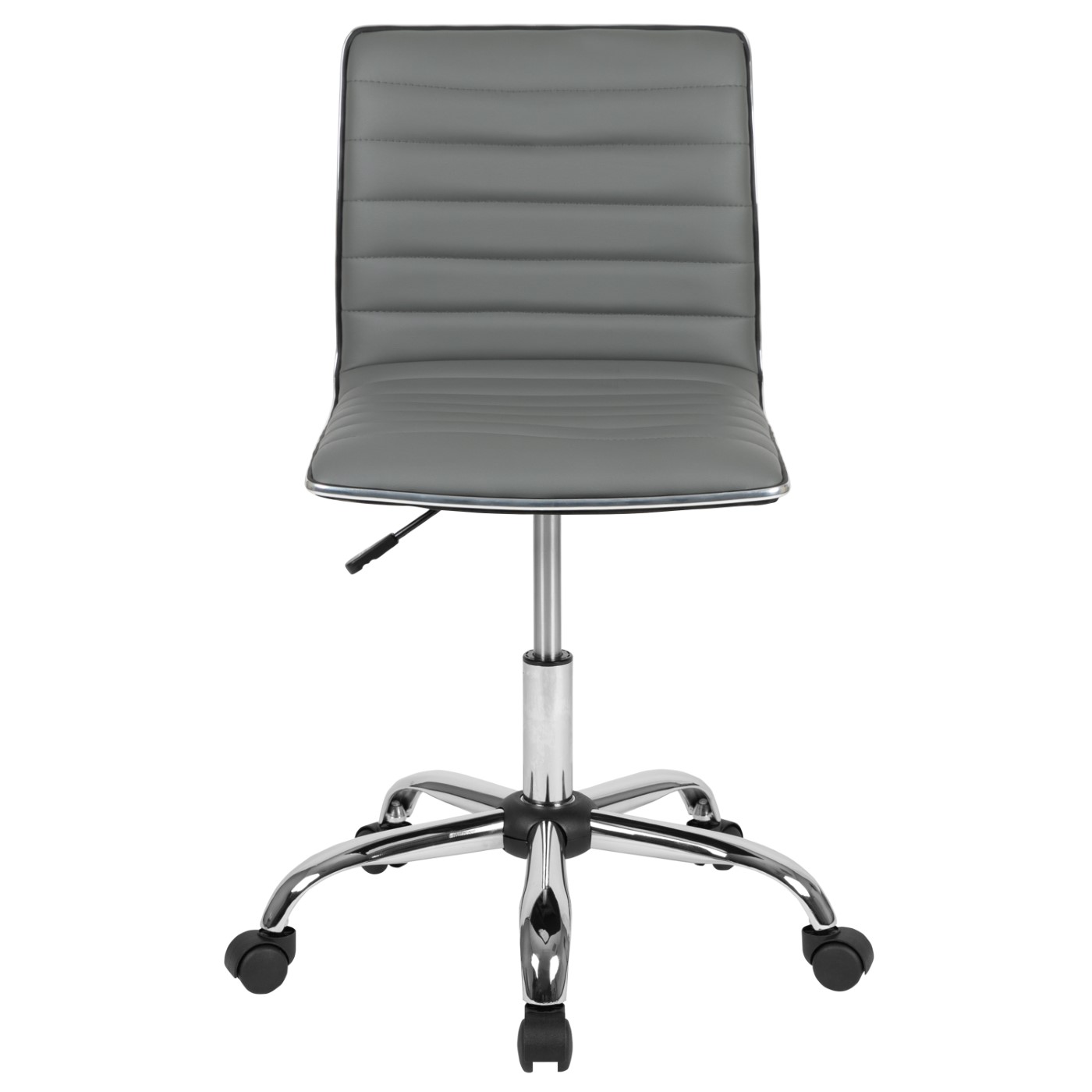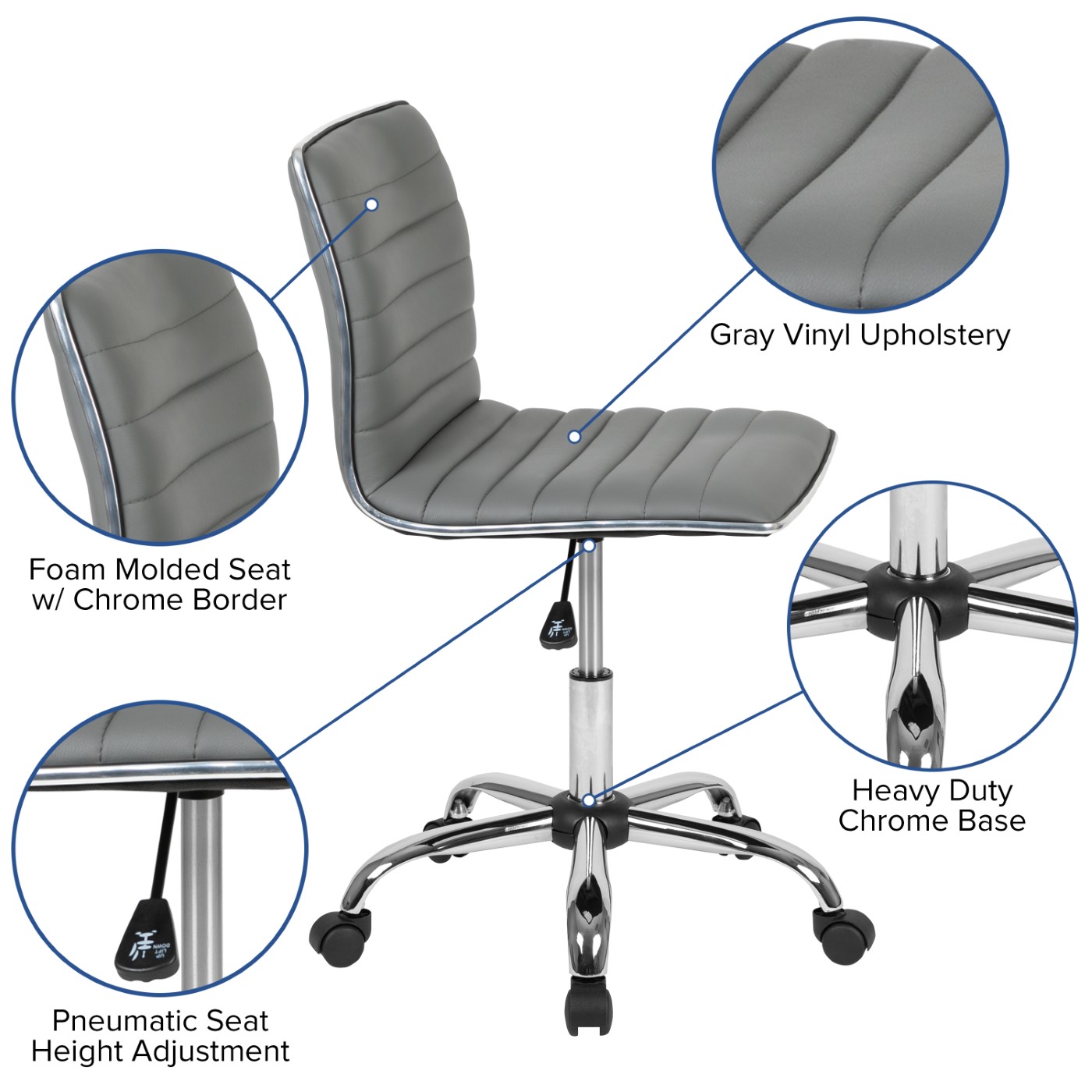 LOW BACK DESIGNER ARMLESS LIGHT GRAY RIBBED SWIVEL TASK OFFICE CHAIR