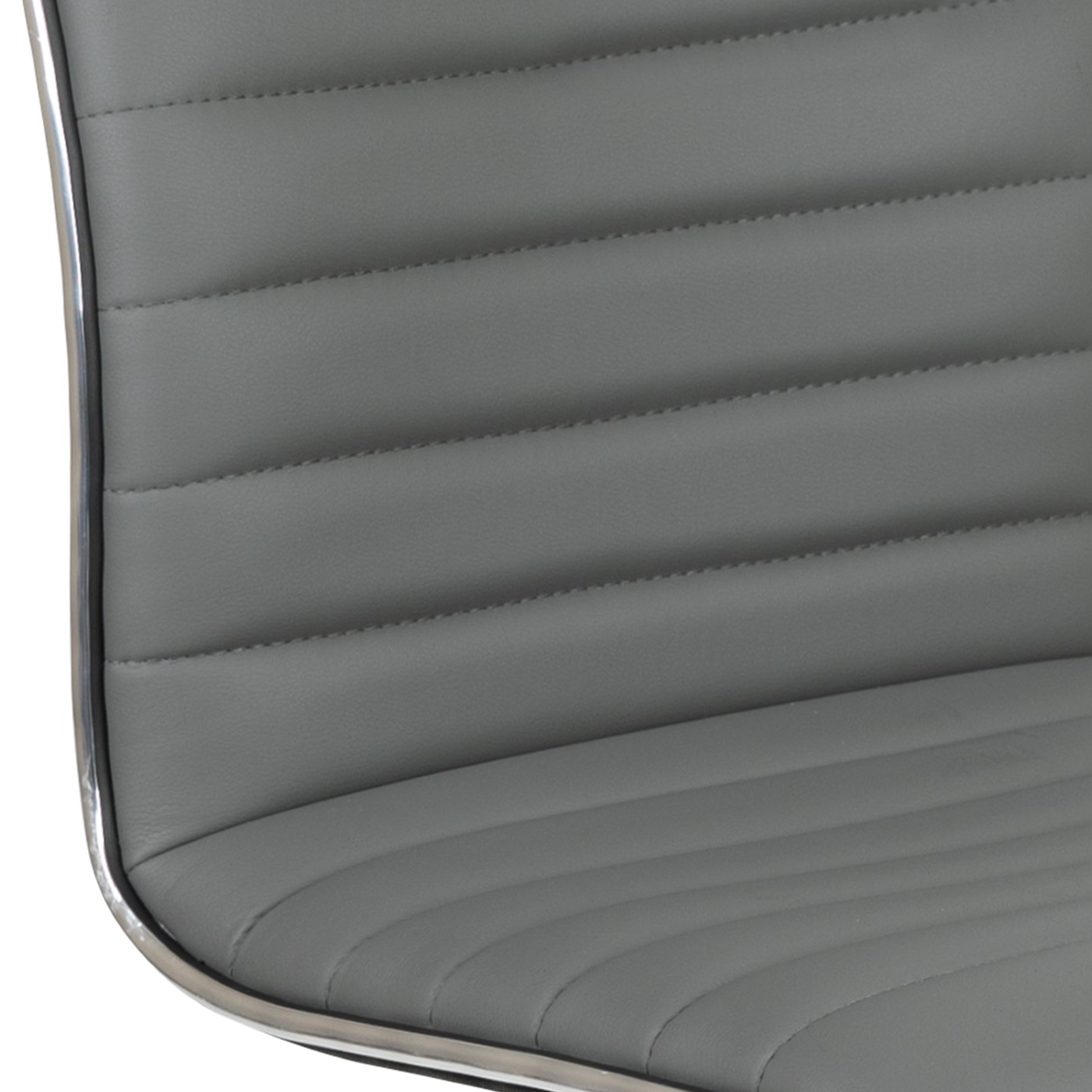 - Ribbed Light Gray Vinyl Upholstery with Chrome Metal Accent Border