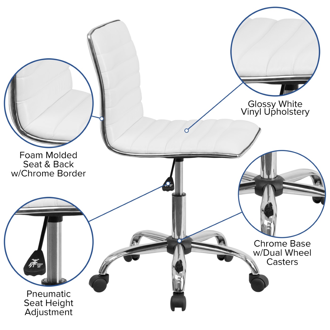 LOW BACK DESIGNER ARMLESS WHITE RIBBED SWIVEL TASK OFFICE CHAIR: FREE SHIPPING!