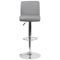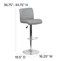 CONTEMPORARY GRAY VINYL ADJUSTABLE HEIGHT BARSTOOL WITH ROLLED SEAT AND CHROME BASE: FREE SHIPPING!