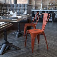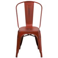 COMMERCIAL GRADE DISTRESSED KELLY RED METAL INDOOR-OUTDOOR STACKABLE CHAIR