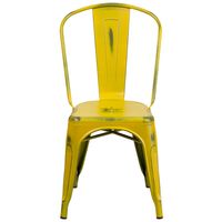 COMMERCIAL GRADE DISTRESSED YELLOW METAL INDOOR-OUTDOOR STACKABLE CHAIR