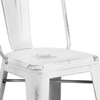 COMMERCIAL GRADE 24" HIGH DISTRESSED WHITE METAL INDOOR-OUTDOOR COUNTER HEIGHT STOOL WITH BACK: FREE SHIPPING!