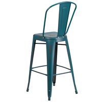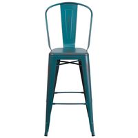 COMMERCIAL GRADE 30" HIGH DISTRESSED KELLY BLUE-TEAL METAL INDOOR-OUTDOOR BARSTOOL WITH BACK: FREE SHIPPING!
