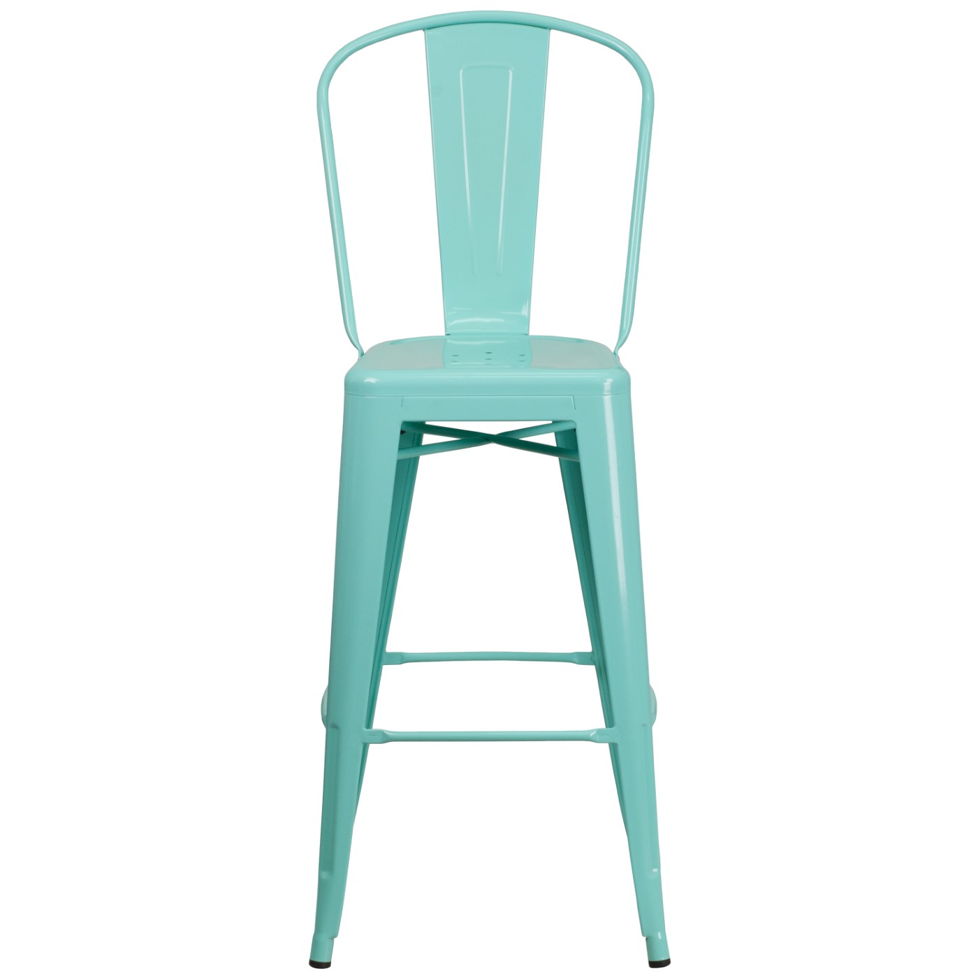 COMMERCIAL GRADE 30" HIGH MINT GREEN METAL INDOOR-OUTDOOR BARSTOOL WITH BACK
