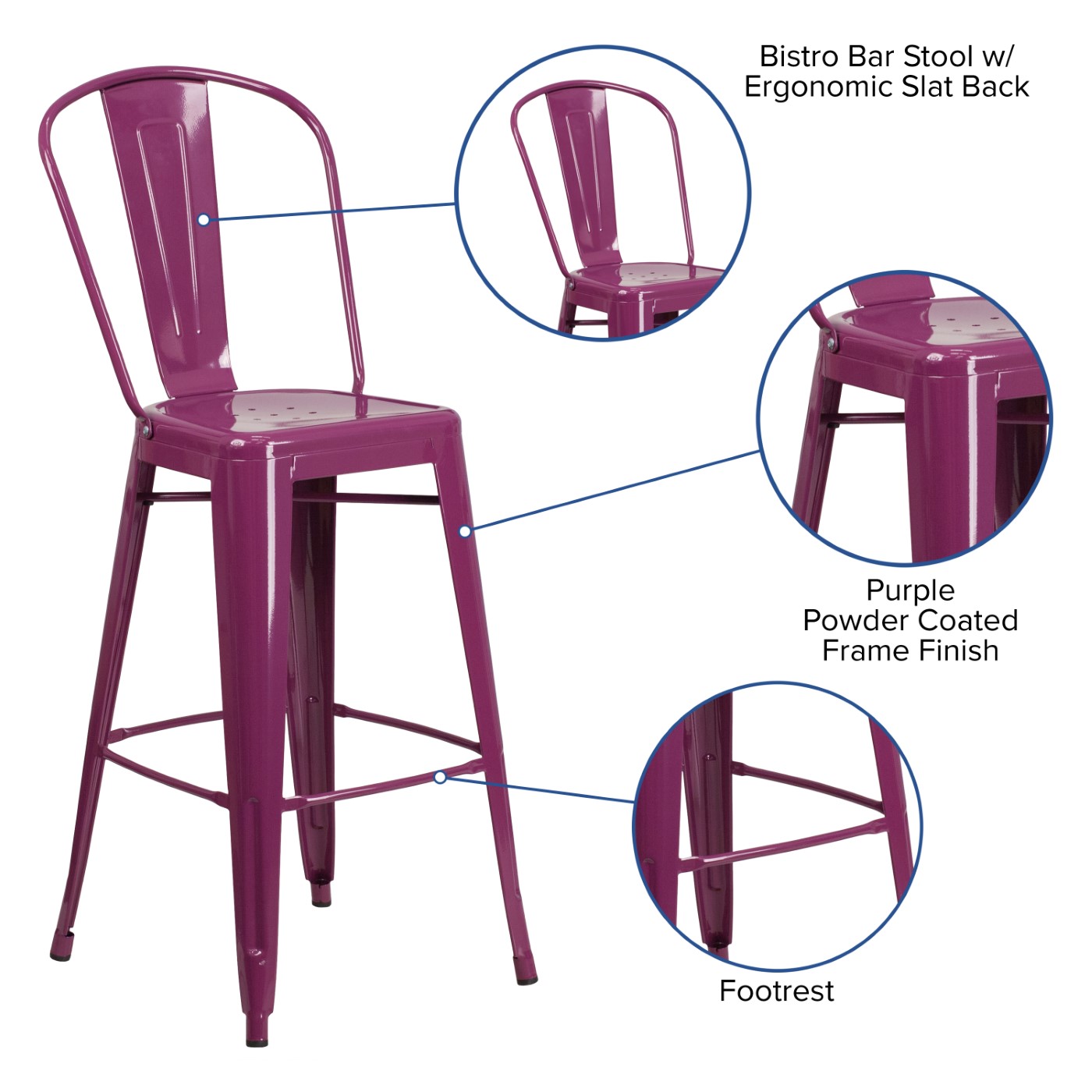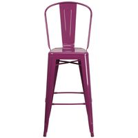 COMMERCIAL GRADE 30" HIGH PURPLE METAL INDOOR-OUTDOOR BARSTOOL WITH BACK