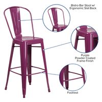 COMMERCIAL GRADE 30" HIGH PURPLE METAL INDOOR-OUTDOOR BARSTOOL WITH BACK: FREE SHIPPING!