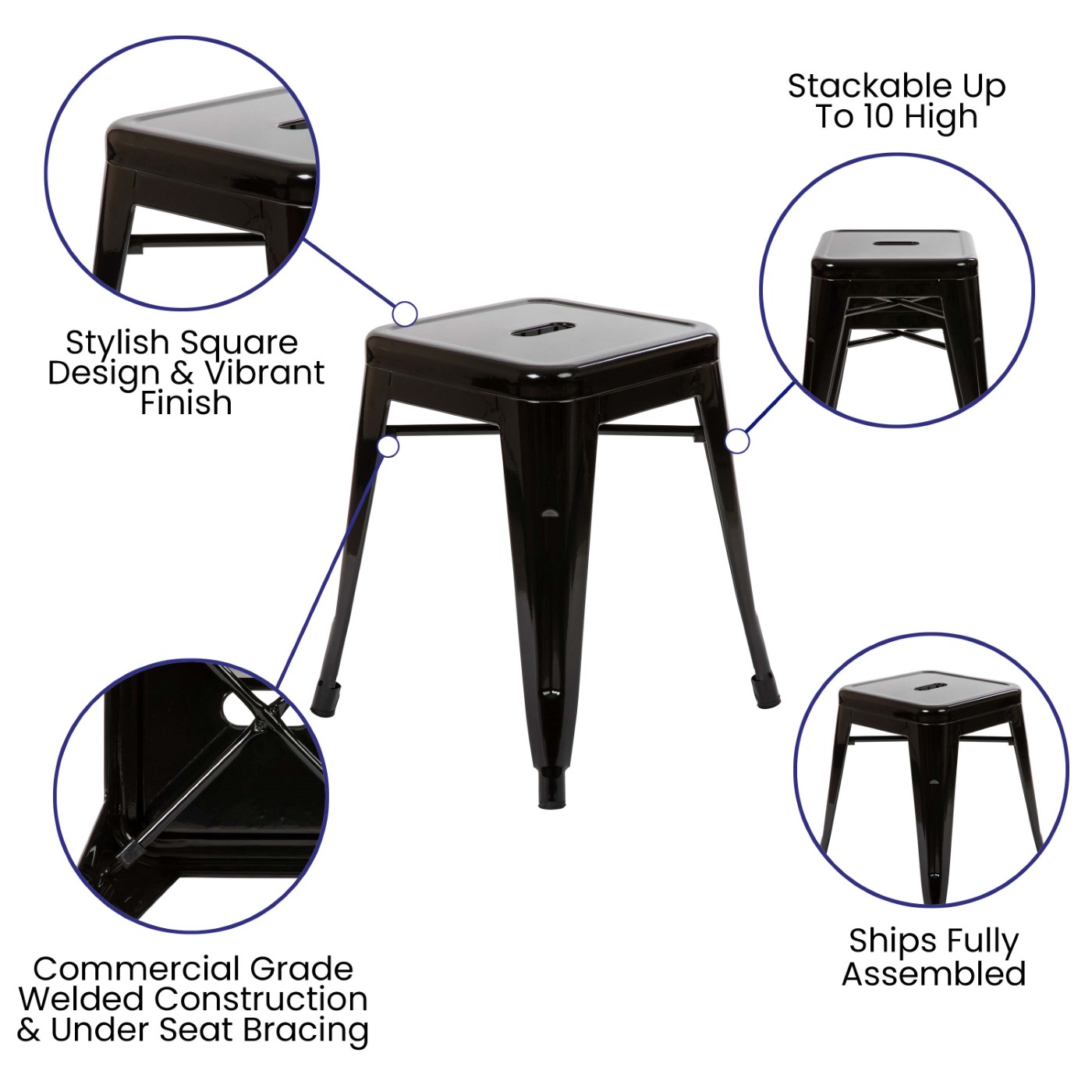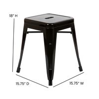 18" TABLE HEIGHT STOOL, STACKABLE BACKLESS METAL INDOOR DINING STOOL, COMMERCIAL GRADE RESTAURANT STOOL IN BLACK - SET OF 4: FREE SHIPPING!