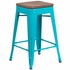 24" HIGH BACKLESS CRYSTAL TEAL-BLUE COUNTER HEIGHT STOOL WITH SQUARE WOOD SEAT