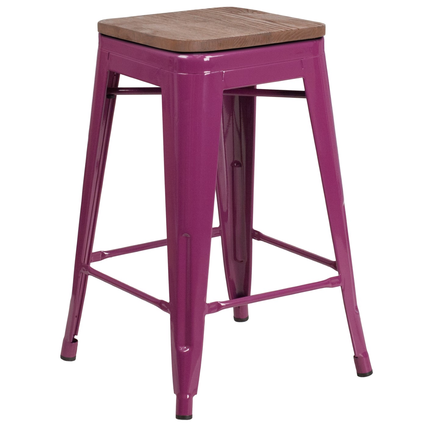 24" HIGH BACKLESS PURPLE COUNTER HEIGHT STOOL WITH SQUARE WOOD SEAT