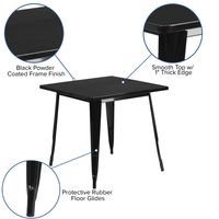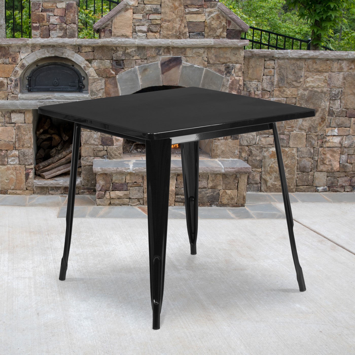 COMMERCIAL GRADE 31.5" SQUARE BLACK METAL INDOOR-OUTDOOR TABLE
