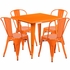 COMMERCIAL GRADE 31.5" SQUARE ORANGE METAL INDOOR-OUTDOOR TABLE SET WITH 4 STACK CHAIRS