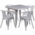 COMMERCIAL GRADE 31.5" SQUARE SILVER METAL INDOOR-OUTDOOR TABLE SET WITH 4 ARM CHAIRS