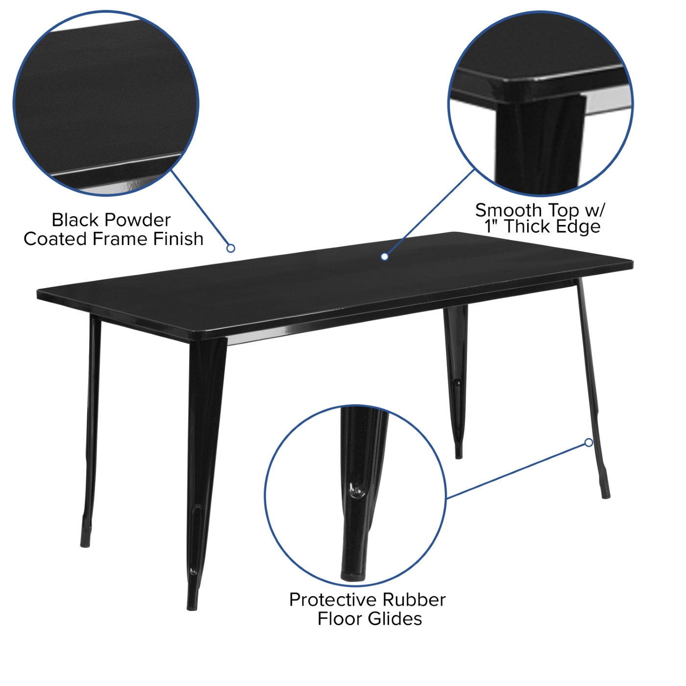 COMMERCIAL GRADE 31.5" X 63" RECTANGULAR BLACK METAL INDOOR-OUTDOOR TABLE