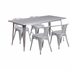 COMMERCIAL GRADE 31.5" X 63" RECTANGULAR SILVER METAL INDOOR-OUTDOOR TABLE SET WITH 4 ARM CHAIRS