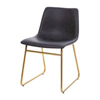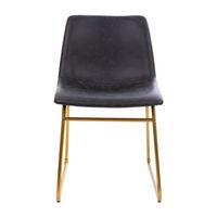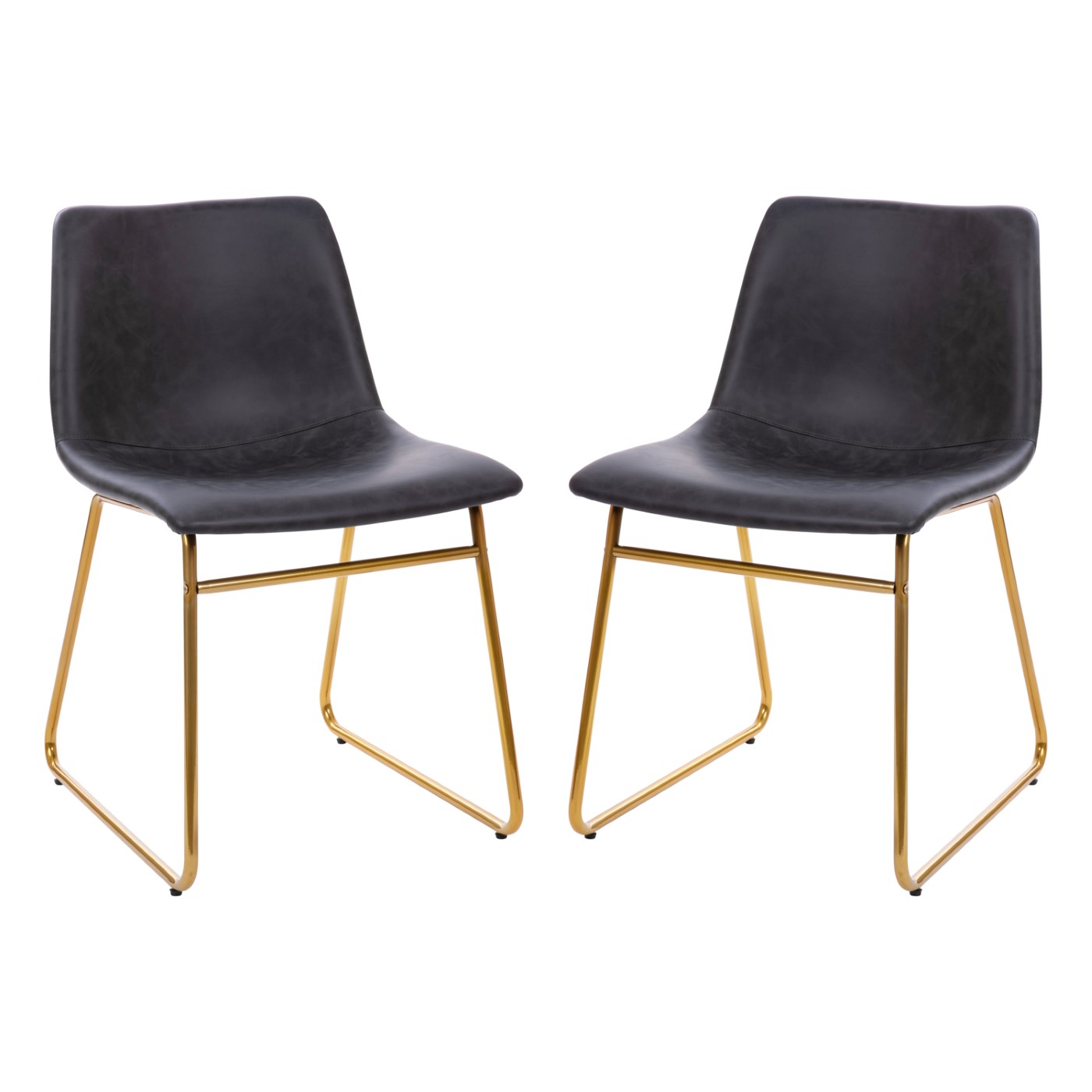 18 INCH DINING TABLE HEIGHT CHAIR, MID-BACK SLED BASE DINING CHAIR IN DARK GRAY LEATHERSOFT WITH GOLD FRAME, SET OF 2: FREE SHIPPING!