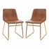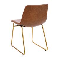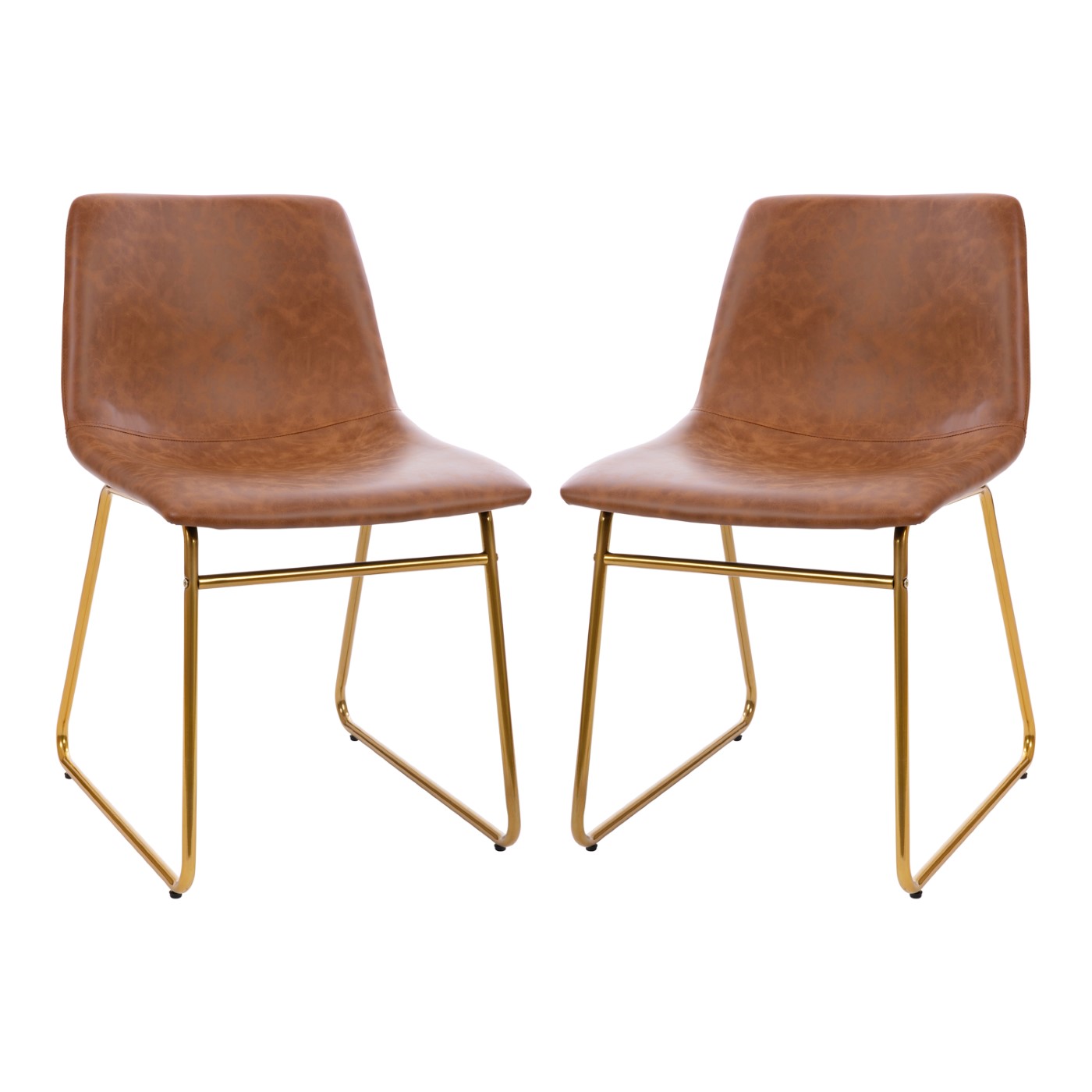 18 INCH DINING TABLE HEIGHT CHAIR, MID-BACK SLED BASE DINING CHAIR IN LIGHT BROWN LEATHERSOFT WITH GOLD FRAME, SET OF 2: FREE SHIPPING!