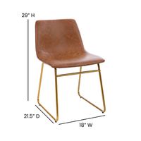 18 INCH DINING TABLE HEIGHT CHAIR, MID-BACK SLED BASE DINING CHAIR IN LIGHT BROWN LEATHERSOFT WITH GOLD FRAME, SET OF 2