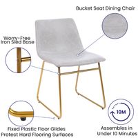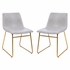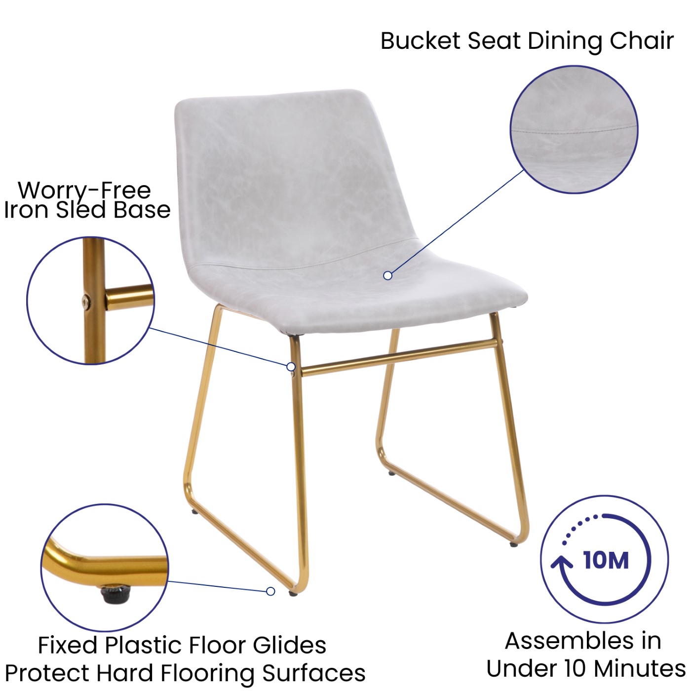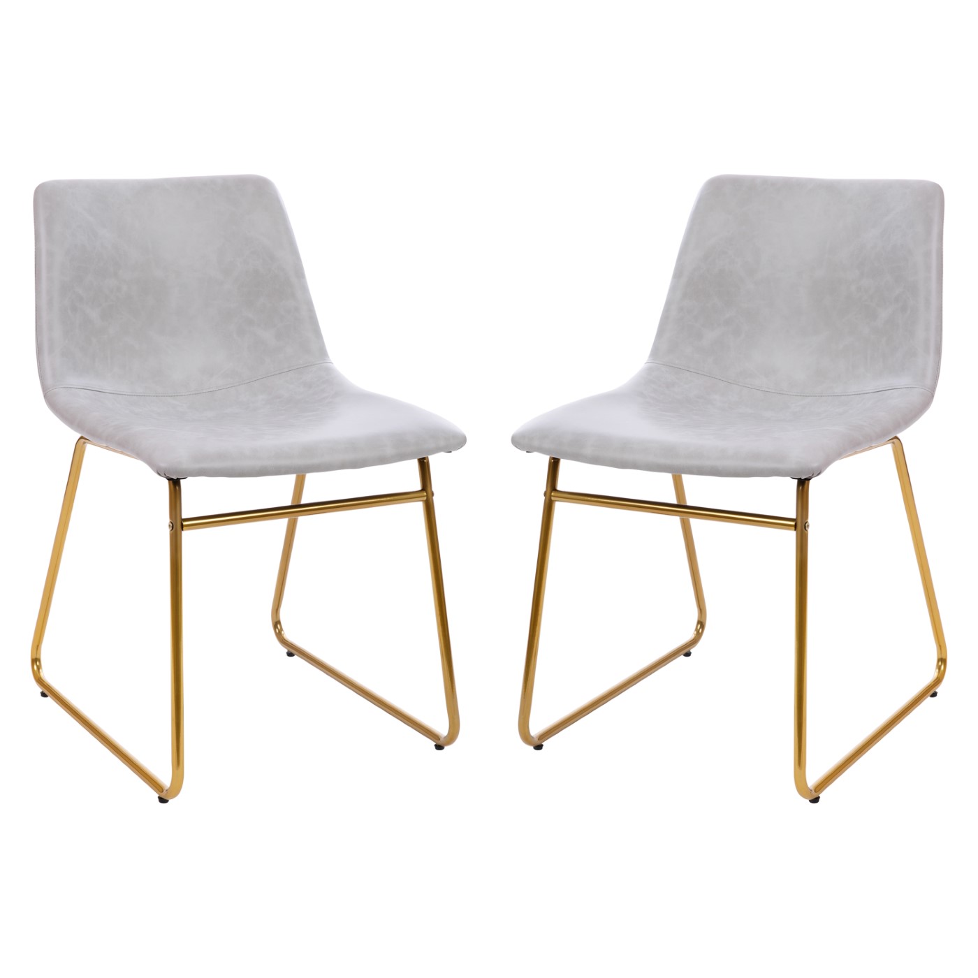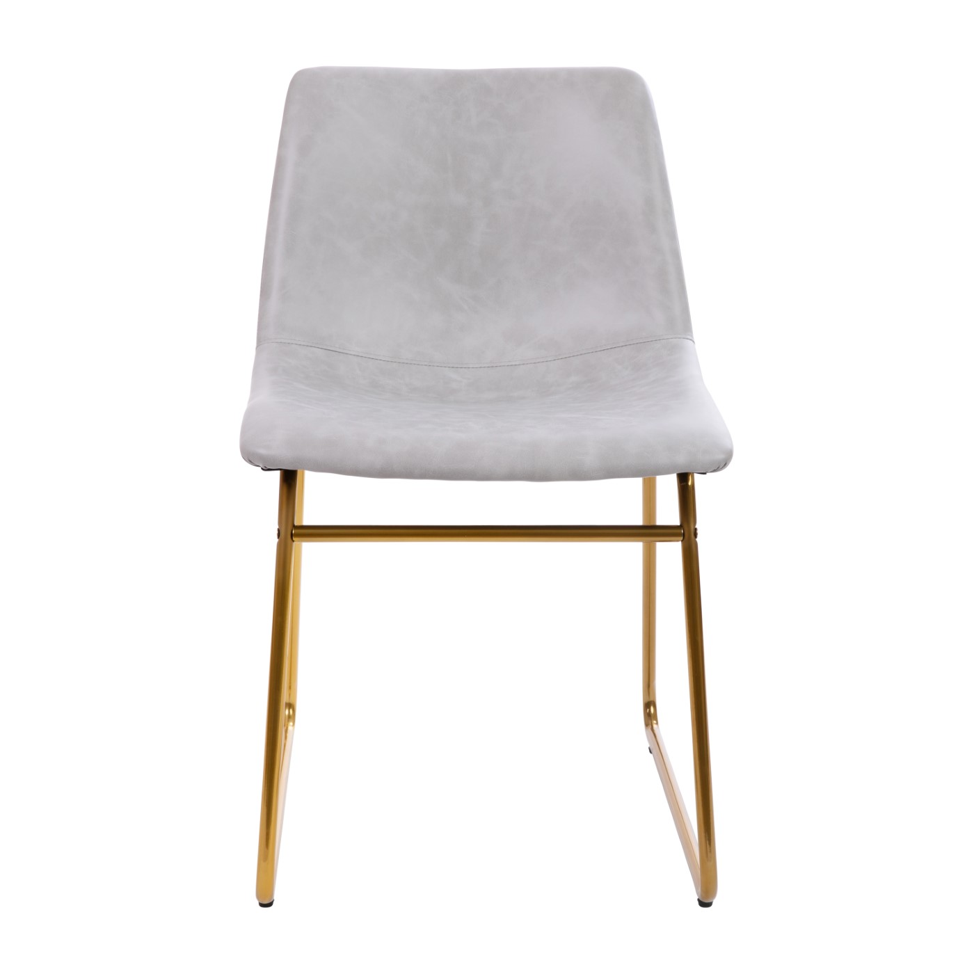 18 INCH DINING TABLE HEIGHT CHAIR, MID-BACK SLED BASE DINING CHAIR IN LIGHT GRAY LEATHERSOFT WITH GOLD FRAME, SET OF 2
